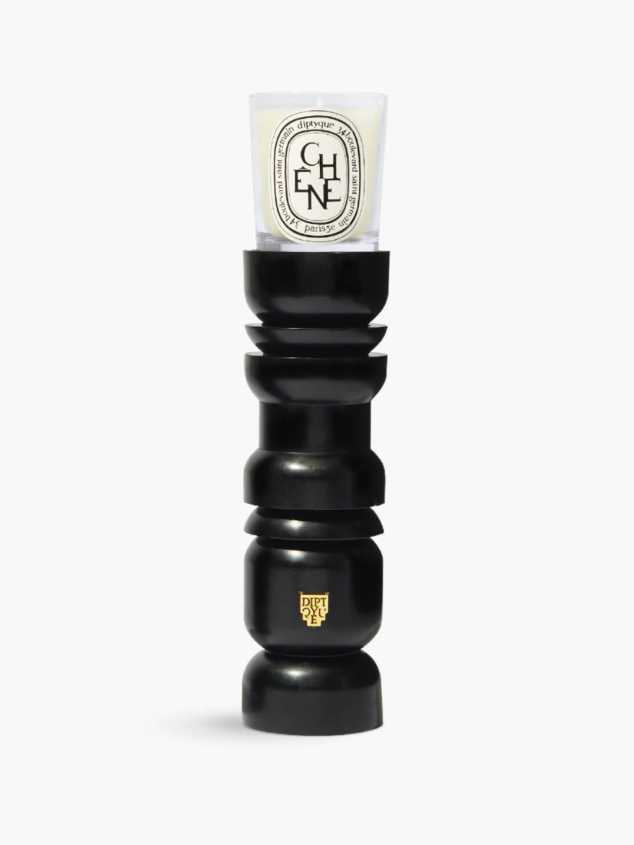 D'un noir profond, ce bougeoir présente une sélection séduisante de formes géométriques envoûtantes. Les versions petite et moyenne de la même collection sont idéales pour prolonger ce spectacle.